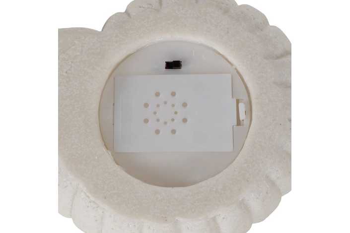Tipo de bombilla: LED Duranción batería: 70 horas. Batería: 3 x AAA (no incluida) Material: piedra artificial (resina-arena-piedra)