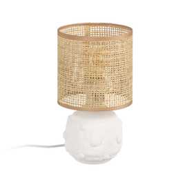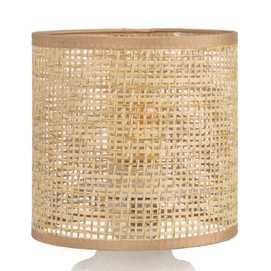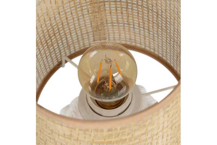 Base de cerámica, medidas 12,5x12,5x12cm. Pantalla de fibra de papel y PVC, medidas 15x15x15cm. Voltios: 220-240V. Casquillo: E27. Bombilla: 1*40W (no incluida). Longitud cable: 130cm.