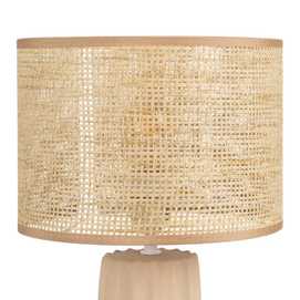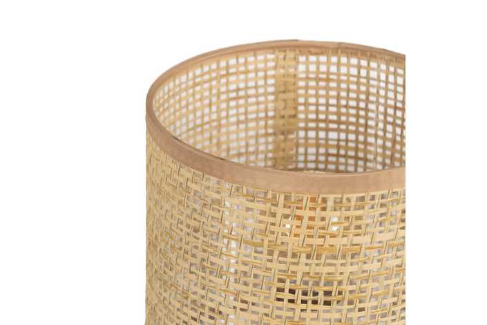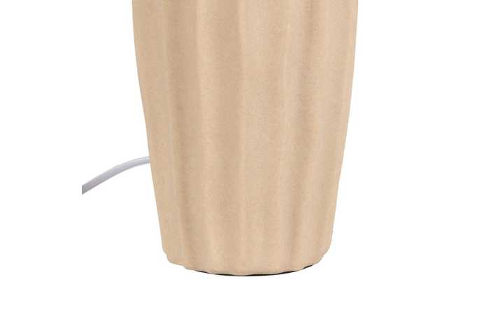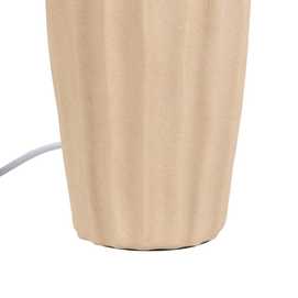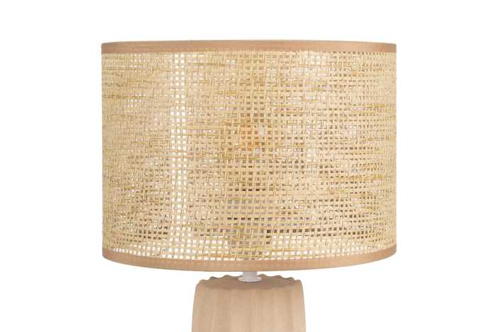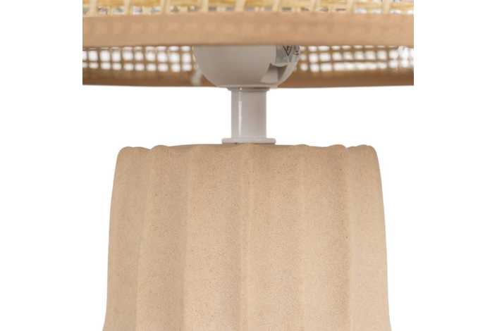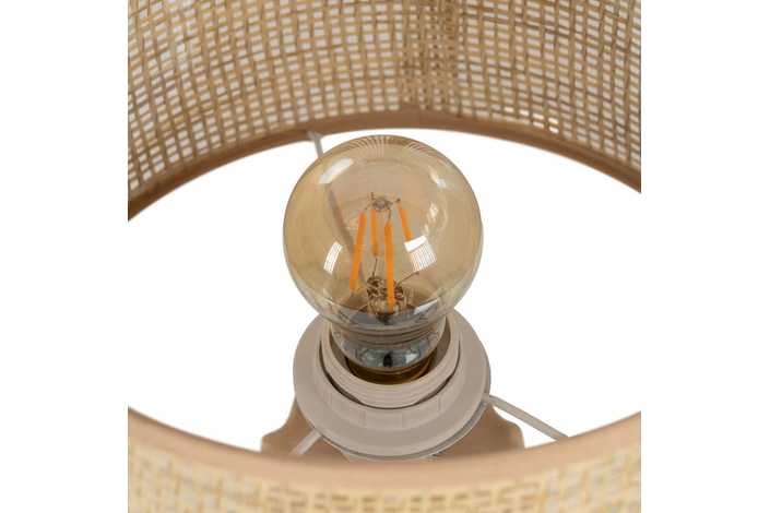 Base de cerámica, medidas 12,5x12,5x26cm. Pantalla de fibra de papel y PVC, medidas 25x25x18cm. Voltios: 220-240V. Casquillo: E27. Bombilla: 1*40W (no incluida). Longitud cable: 130cm.