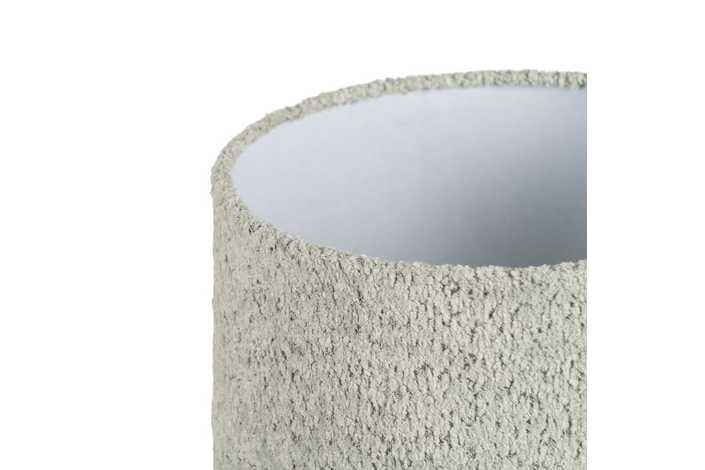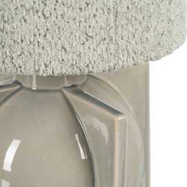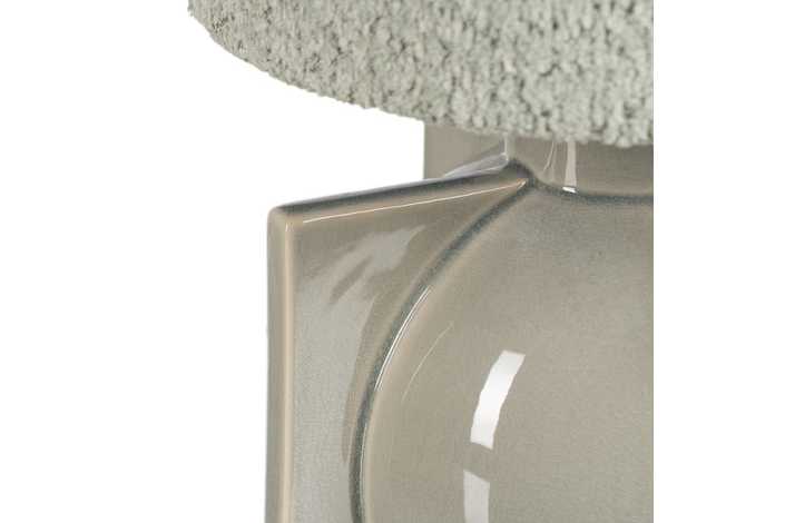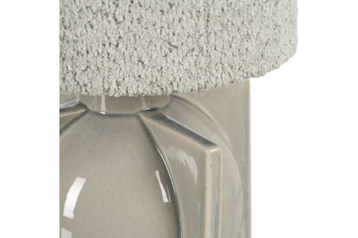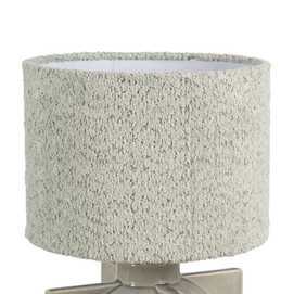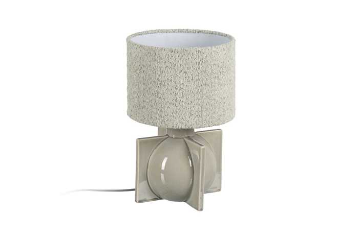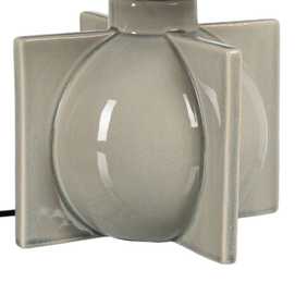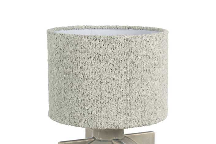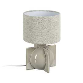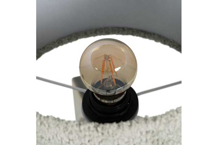 Base de cerámica, medidas 23x23x19cm. Pantalla de tejido y PVC, medidas 25x25x18cm. Voltios: 220-240V. Casquillo: E27. Bombilla: 1*40W (no incluida). Longitud cable: 130cm.