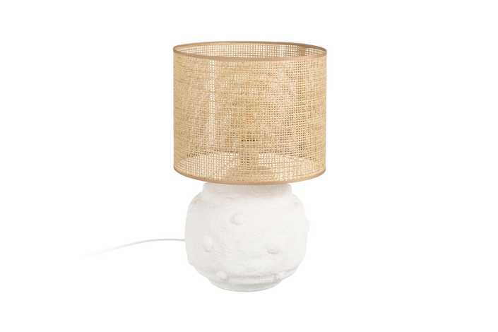 Base de cerámica, medidas 30x30x24cm. Pantalla de fibra de papel y PVC, medidas 30x30x23,5cm. Voltios: 220-240V. Casquillo: E27. Bombilla: 1*40W (no incluida). Longitud cable: 135cm.