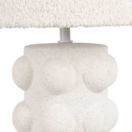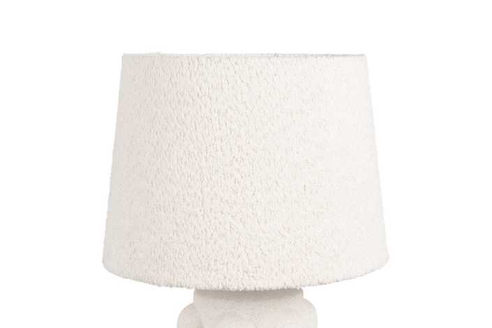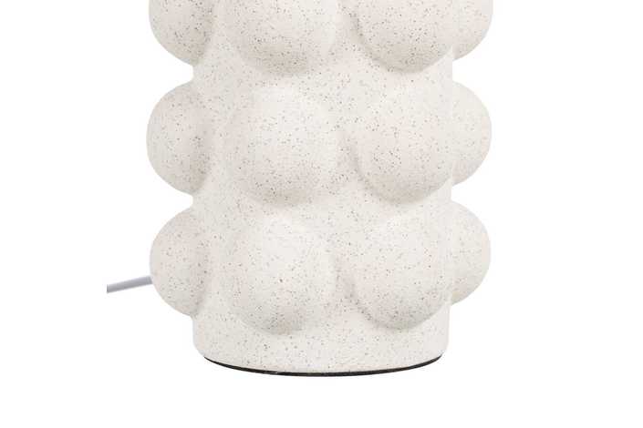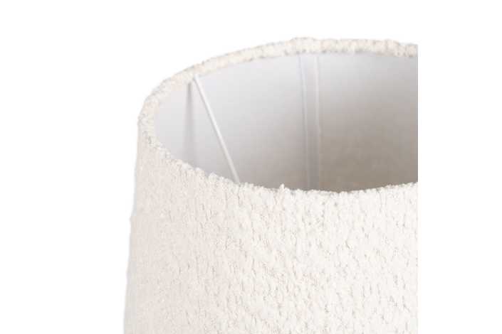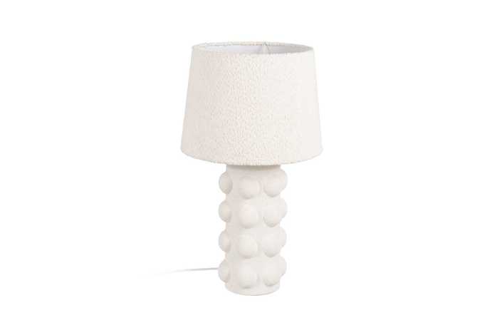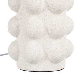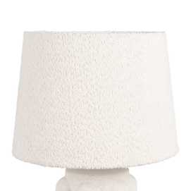 Base de cerámica, medidas 10,5x10,5x30,5cm. Pantalla de tejido y PVC, medidas 18x18x16cm. Voltios: 220-240V. Casquillo: E27. Bombilla: 1*40W (no incluida). Longitud cable: 155cm.