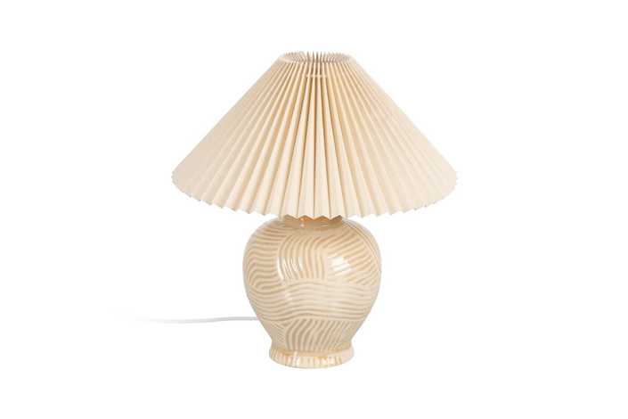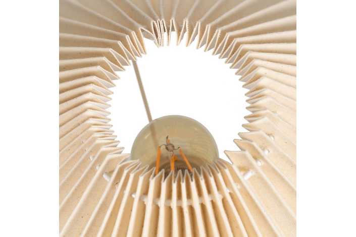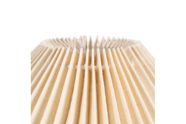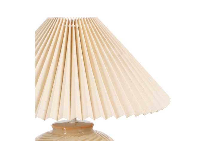 Base de cerámica, medidas 18x18x20cm. Pantalla de tejido y PVC, medidas 35x35x16cm. Voltios: 220-240V. Casquillo: E27. Bombilla: 1*40W (no incluida). Longitud cable: 135cm.