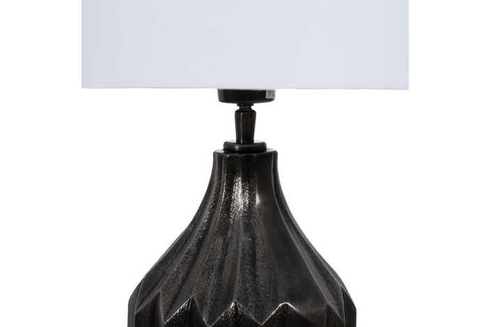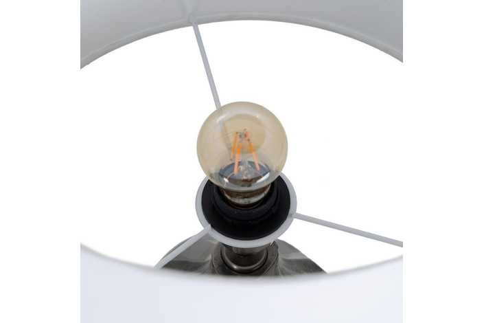 Material base: Aluminio Material tulipa: Algodón. Medida tulipa:35.5x35.5x23cm. Medida base:16.5x16.5x50cm. Casquillo: E27 Votaje: 220V. Cable: negro Largo cable: 215cm.