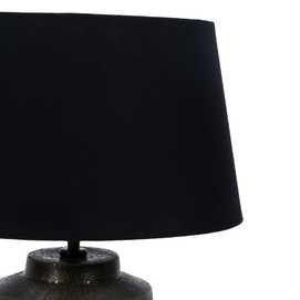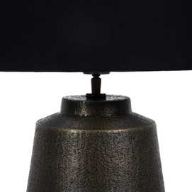 Material base: Aluminio Material tulipa: Algodón. Medida tulipa:30.5x38x23cm. Medida base:23.5x23.5x30.5cm. Casquillo: E27 Votaje: 220V. Cable: negro Largo cable: 215cm.