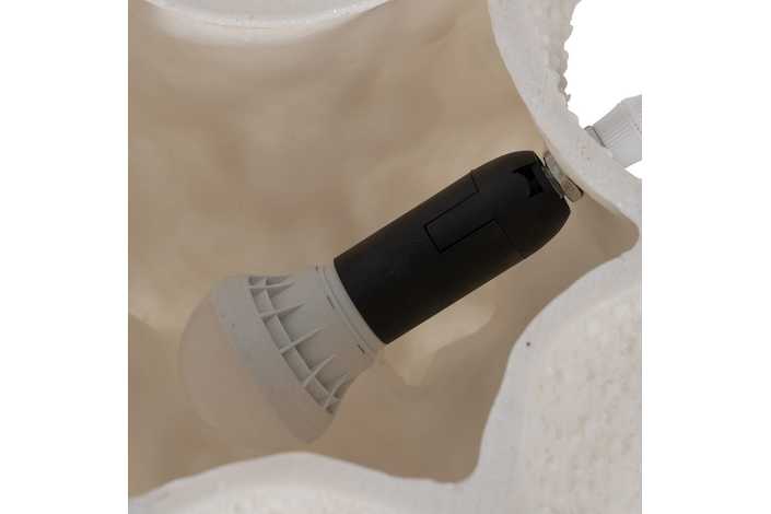 Voltaje: 220-240V Tipo de bombilla: E14 Largo del cable: 180cm. Material: piedra artificial (resina-arena-piedra)
