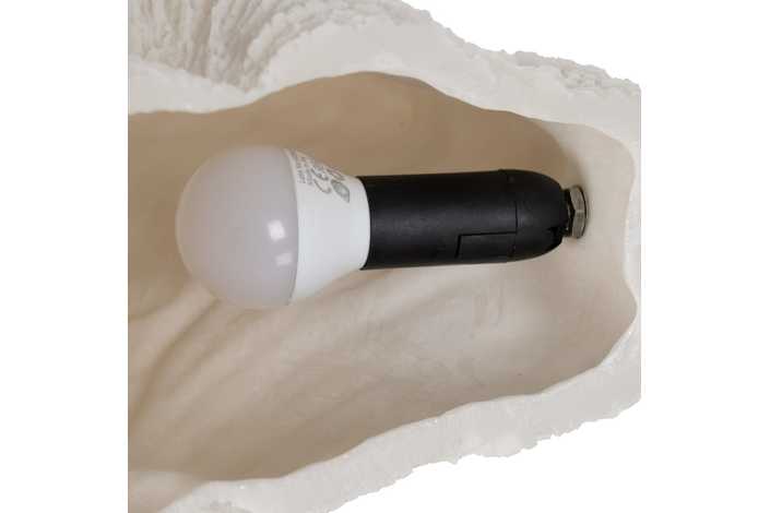 Voltaje: 220-240V Tipo de bombilla: E14 Largo del cable: 180cm. Material: piedra artificial (resina-arena-piedra)