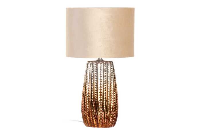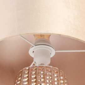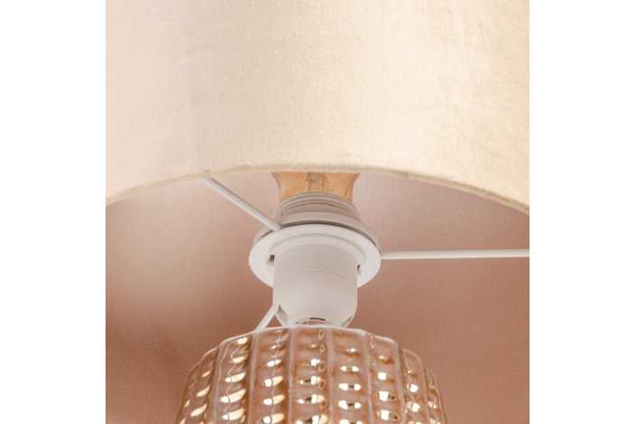 Material base: Cerámica. Material tulipa: Terciopelo. Voltaje: 220-240v Casquillo: E27 Bombilla: 1x 60w Máx. Cable: 130cm. Medida base: 16x16x27.5cm. Medida tulipa: 28x28x20cm.
