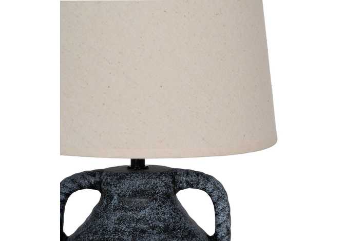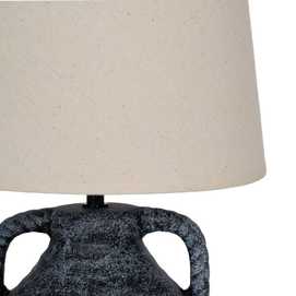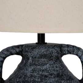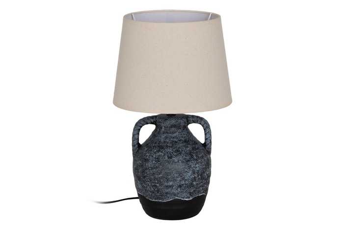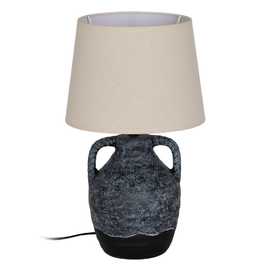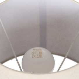 Base de cerámica, medidas 17x17x22cm. Tulipa de tejido, PVC y metal, medidas 20x25x18,5cm. Voltios: 220-240V. Casquillo: E27. Bombilla: 1*40W (no incluida). Longitud cable: 140cm.