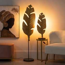 LÁMPARA MESA HOJA ORO-NEGRO METAL 24 X 24 X 65 CM