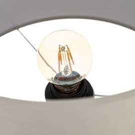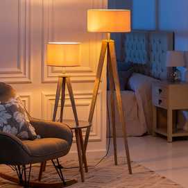 Material: Madera, tejido (65% poliéster, 35% algodón). Voltaje: 220-240V. Casquillo: E27 Bombilla: 1x Máx 60w (no incluida). Medida tulipa: 30x30x20cm. Largo del cable: 155cm.