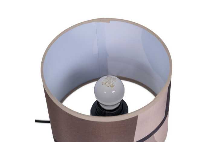 Material: cerámica Tulipa: 18x18x14cm. Material tulipa: 65% poliéster - 35% algodón Voltaje: 220-240v 50Hz Casquillo: E27 Largo cable: 115cm. Bombillas: 1 x 60w (no incluida) Cable: negro