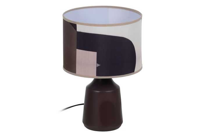Material: cerámica Tulipa: 22x22x15cm. Material tulipa: 65% poliéster - 35% algodón Voltaje: 220-240v 50Hz Casquillo: E27 Largo cable: 115cm. Bombillas: 1 x 60w (no incluida) Cable: negro