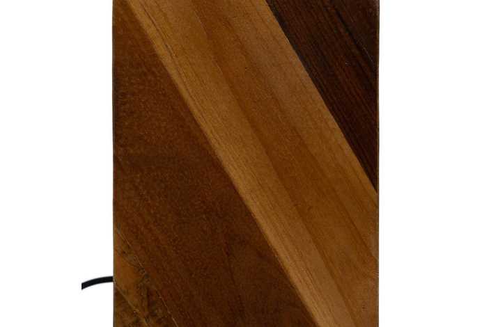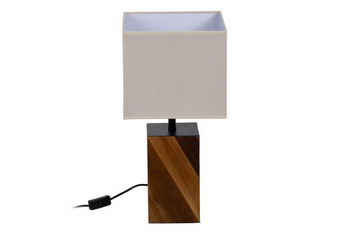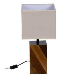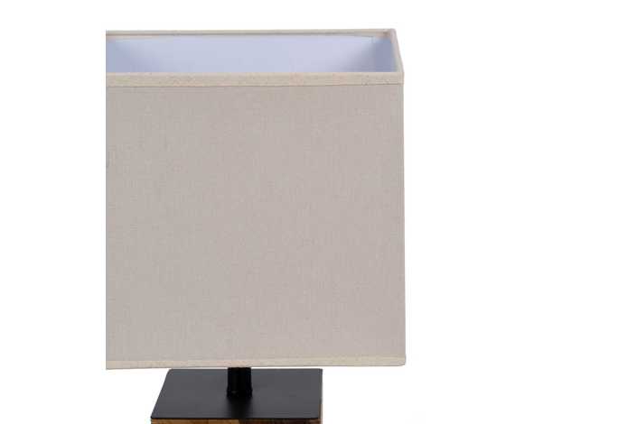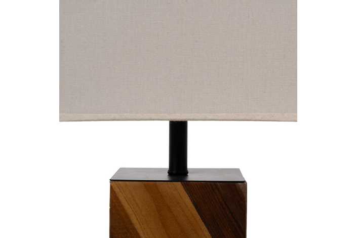 Material: madera reciclara Tulipa: 25x25x22cm. Material tulipa: lino Base: 12.5x12.5x23cm. Voltaje: 220-240v 50Hz Casquillo: E27 Largo cable: 115cm. Bombillas: 1 x 60w (no incluida) Cable: negro.