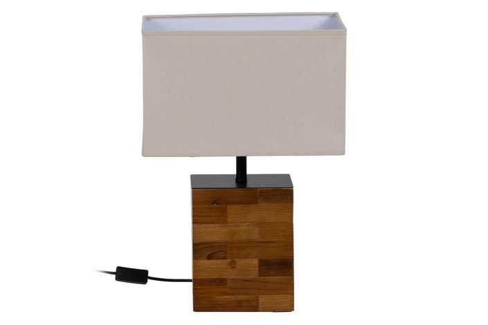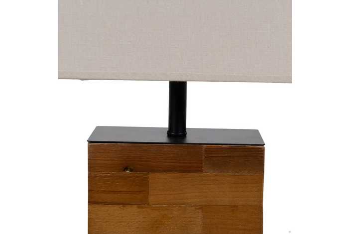 Material: madera reciclara Tulipa: 35x18x22cm. Material tulipa: lino Base: 18x10x23cm. Voltaje: 220-240v 50Hz Casquillo: E27 Largo cable: 115cm. Bombillas: 1 x 60w (no incluida) Cable: negro