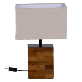 LÁMPARA MESA MARRÓN-CREMA TEJIDO-MADERA 35 X 18 X 51 CM