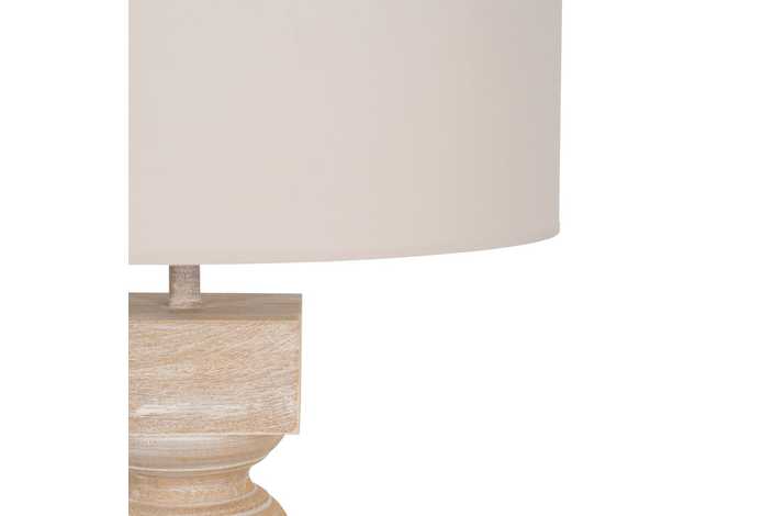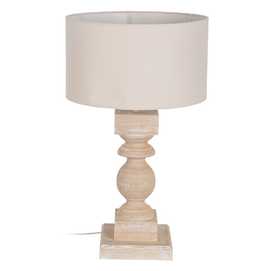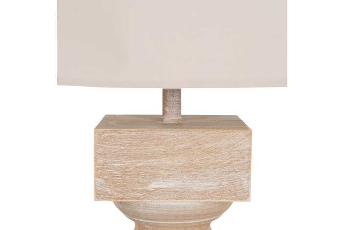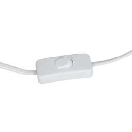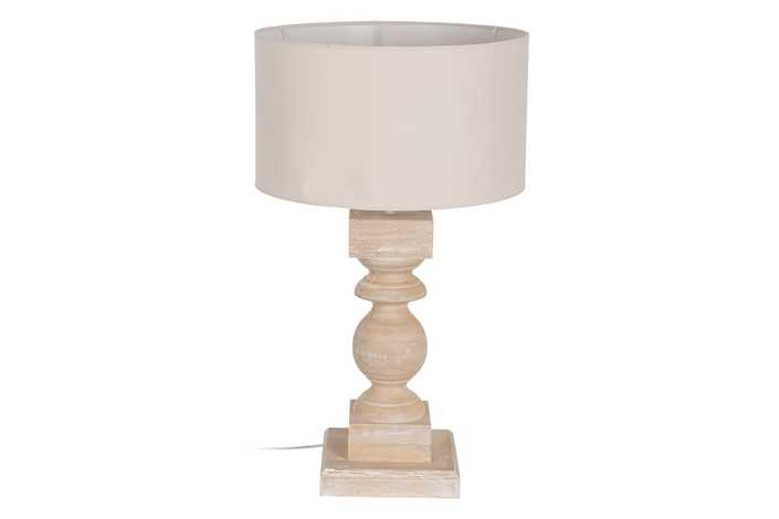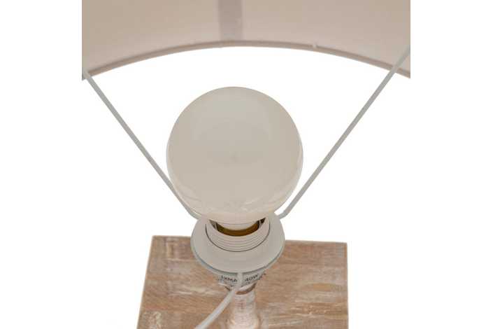 Material base: Dm. Medida base: 25x25x55cm. Material tulipa: Algodón, lino. Medida tulipa: 48x48x27cm. Cable blanco, medida: 140cm. Voltaje: 220-240V. Casquillo: E27. Bombilla: Máx. 40W (no incluída).