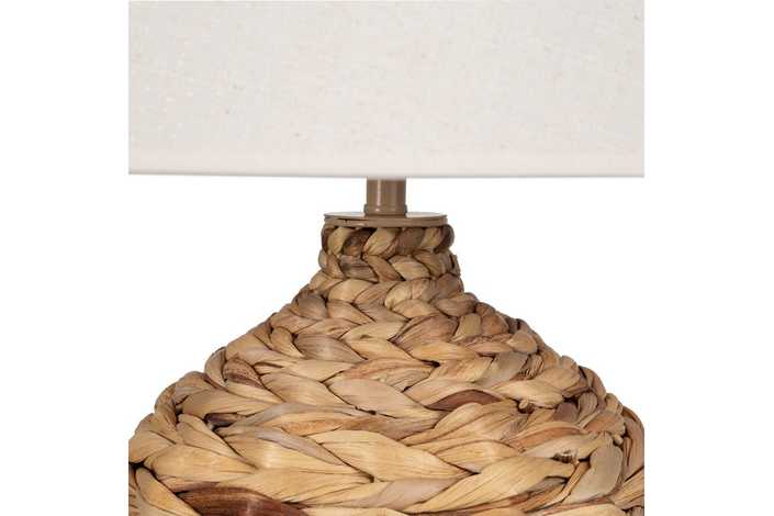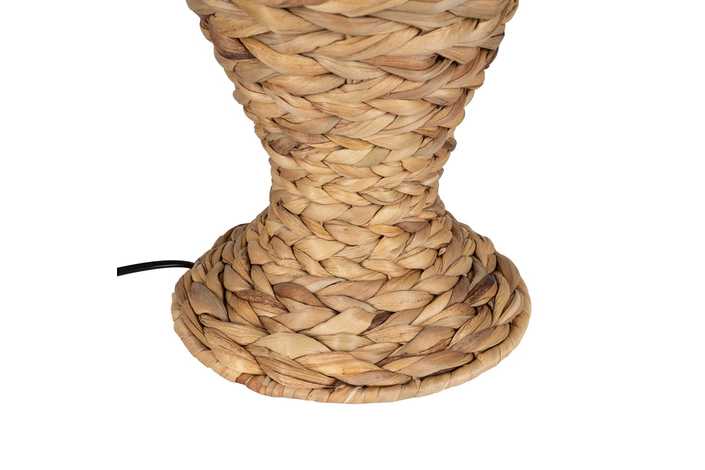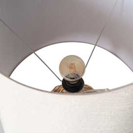 Material: fibra natural - hierro - tejido. Tulipa: lino. Voltaje: 220 - 240v 50Hz Bombilla: no inclida Casquillo: E27 Largo cable: 90cm. Medida tulipa: 30x40x26cm. Medida base: 22x22x42cm.