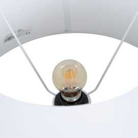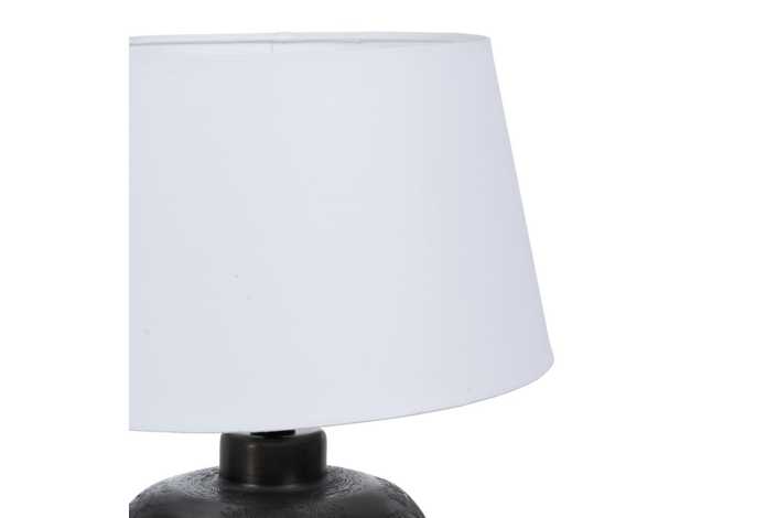 Material base: Aluminio Material tulipa: Algodón. Medida tulipa:30.5x38x23cm. Medida base:24x24x34cm. Casquillo: E27 Votaje: 220V. Cable: negro Largo cable: 215cm.
