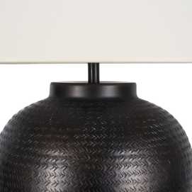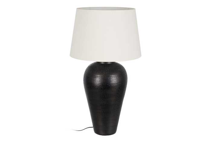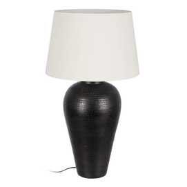 Material base:Aluminio. Material tulipa: Lino. Medida tulipa:51x51x30,5cm ( diámetro superior 46cm) Medida base:34x34x57cm Casquillo: E27 Votaje: 220-240v Cable: negro Largo cable: 2.5m.