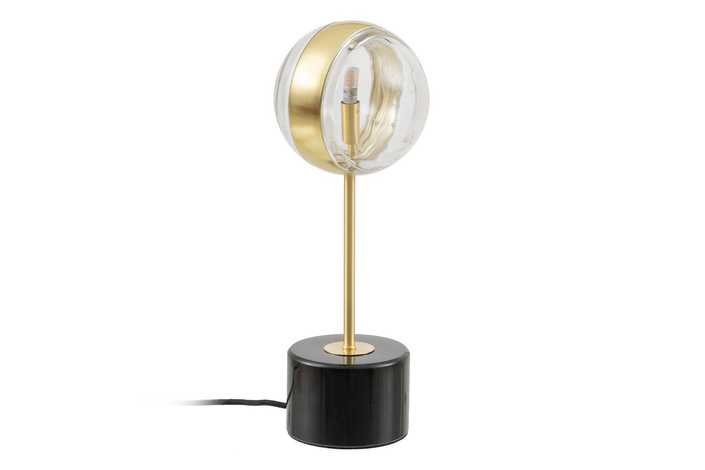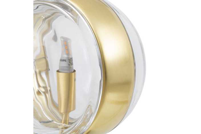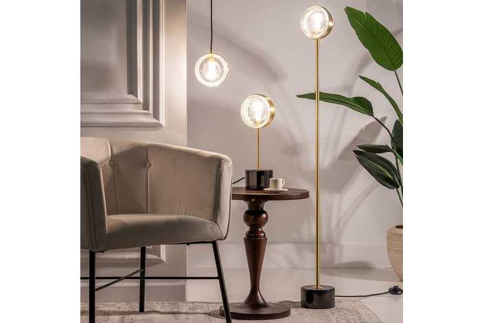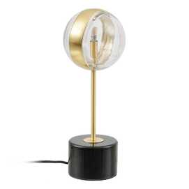 Material: cristal, hierro. Número de bombillas necesarias:1 Bombillas no incluidas. Voltaje:220-240V Bombilla: 28W máx. Casquillo: G9 Longitud del cable:2.2m. Color cable: transparente. Diámetro tulipas:15cm Base de mármol.