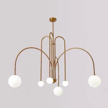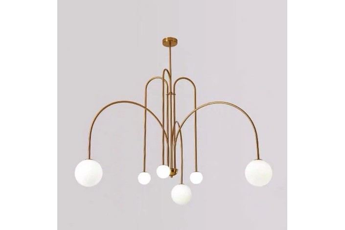 Lámpara de colgar, diseño, metal dorada vintage, tulipas blancas de cristal