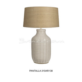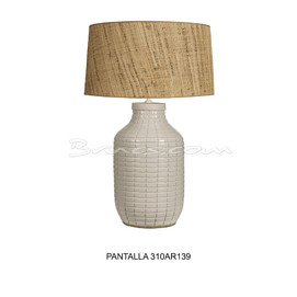 No incluye pantalla / It does not include the shade/ Il n’inclut pas l’abat-jour. LONETA 310AR128, LINO OSCURO 310AR112, RAFIA-2 310AR138, RAFIA-3 310AR139, CHINA 310AR020 Encuéntrela en la sección de iluminación/ Find it in the illumination sectMedidas: 29 Øx59h cm