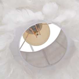 Material: plumas, metal. Voltaje: 220-240V. Caquillo: E27. Bombilla: 1*60W máx.(no incluida). Longitud cable: 180cm.