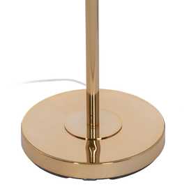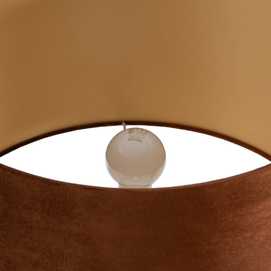 Base de cristal, medidas: 25x25x137cm. Tulipa de tejido (100% poliéster) y metal, medidas:43x43x25,4cm. Voltaje: 230V. Casquillo: E27. Bombilla: 1*60W máx (no incluida). Longitud del cable: 210cm.