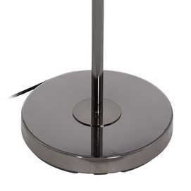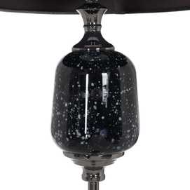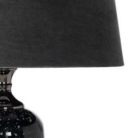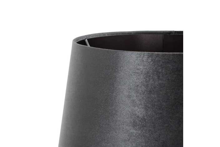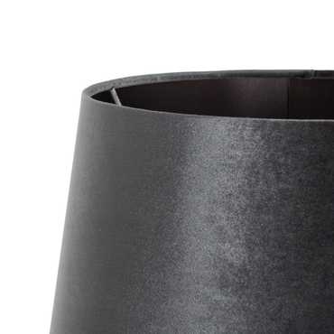 Base de cristal, medidas: 25x25x130cm. Tulipa de tejido (100% poliéster) y metal, medidas:33x40,5x28cm. Voltaje: 230V. Casquillo: E27. Bombilla: 1*60W máx (no incluida). Longitud del cable: 215cm.