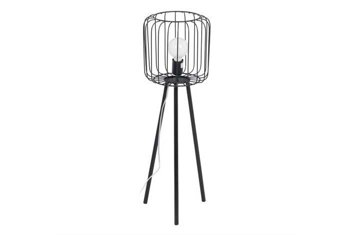 Material: hierro. Voltaje: 220-240v. 50Hz. Casquillo: E27. Cable transparente, largo: 135cm. Bombilla: 1 máx. 60W (no incluida) IP20. Altura patas: 54cm. Para montar.