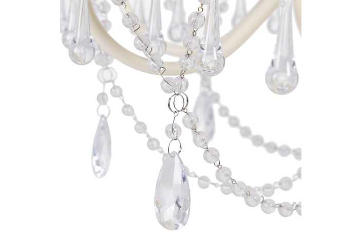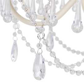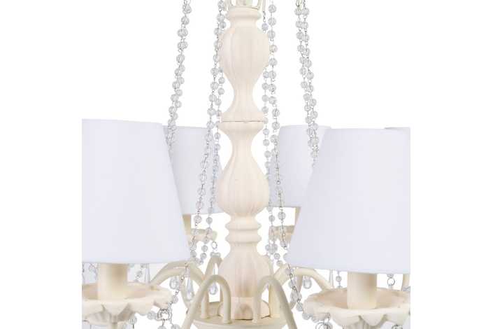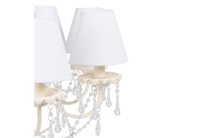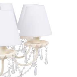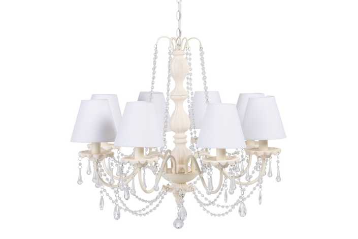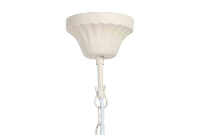 Largo del cable: 56cm. Tulipas de algodón: 8x15x13cm. Bombillas: 8xE14. Materiales: hierro y acrílico.
