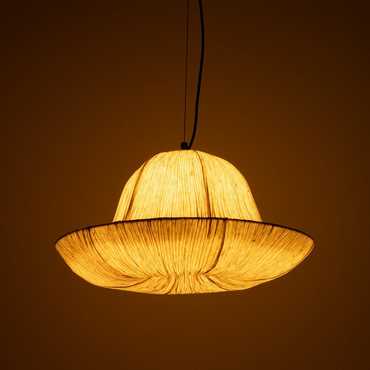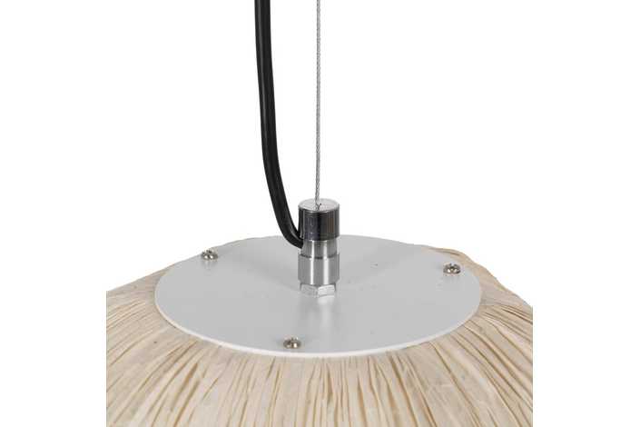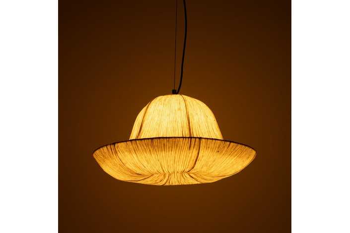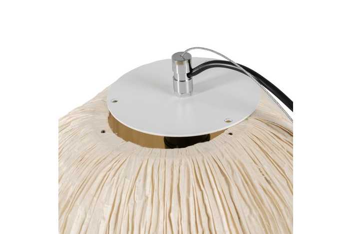 Material: papel - hierro Casquillo: 1 x E27/12w led Bombilla: no incluida Cable negro, largo 150cm. Altura regulable.