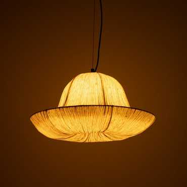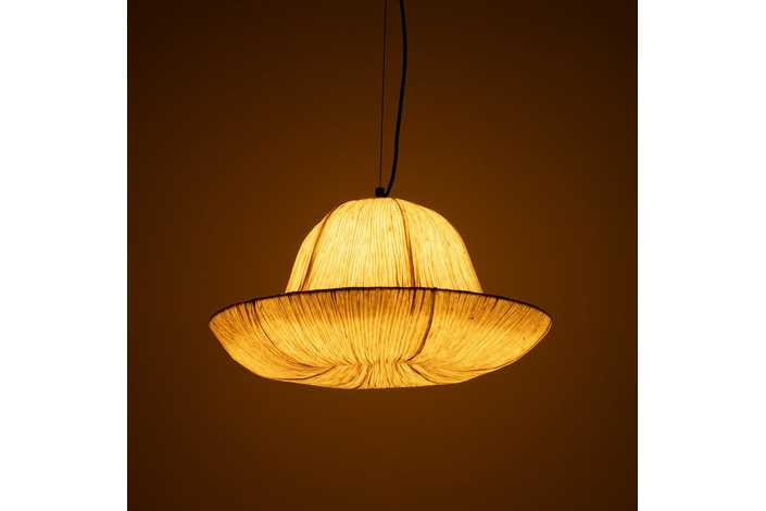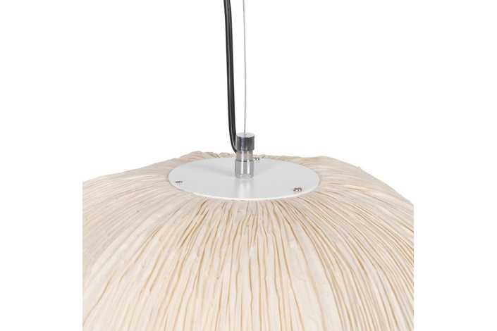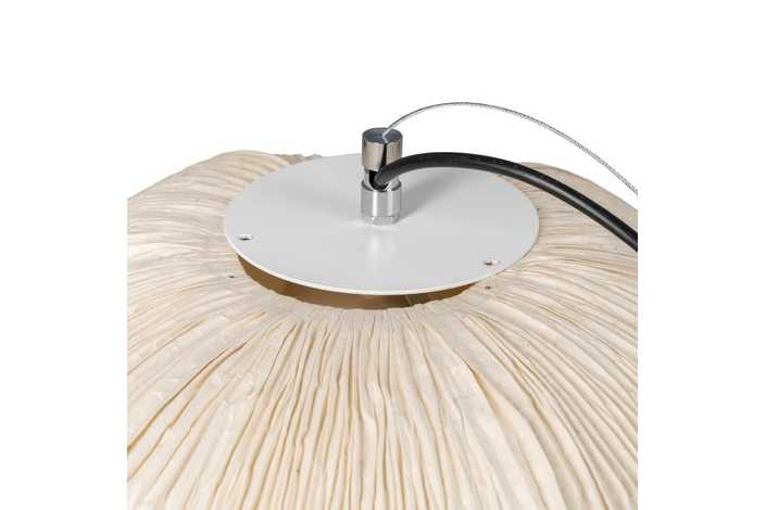 Material: papel - hierro Casquillo: 3 x E27/9w led Bombilla: no incluida Cable negro, largo 150cm. Altura regulable.