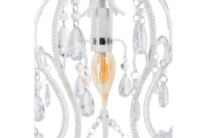 ´Largo de la cadena: 52cm. Bombilla: E14. Adornos acrílicos. Material: hierro.