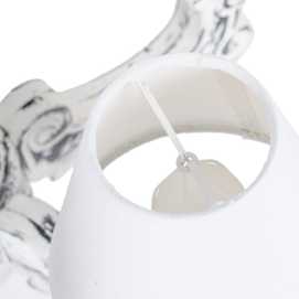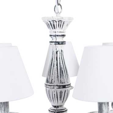 Largo del cable: 50cm. 5xE14 Materiales: hierro, acrílico y tulipas de algodón. Max: 40W.