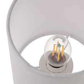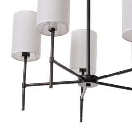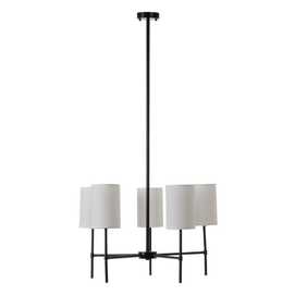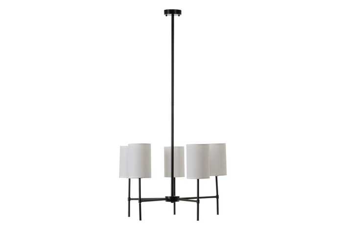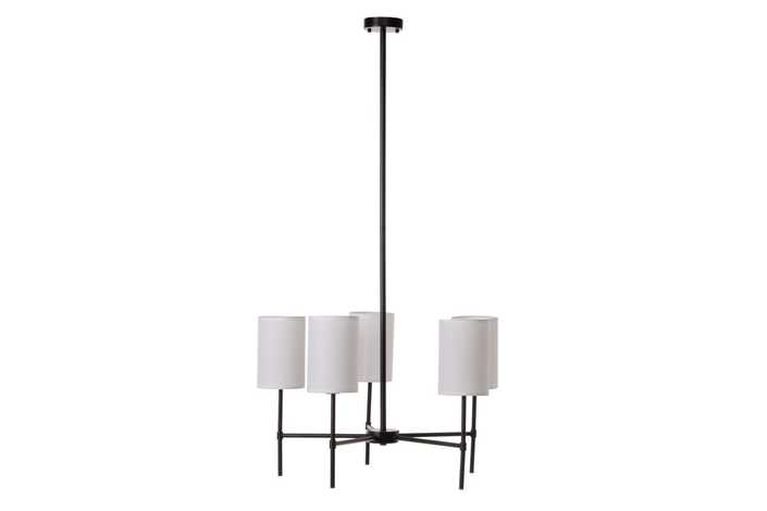MATERIAL: HIERRO Y TEJIDO. VOLTAJE: 220V CASQUILLO: E14 BOMBILLAS: 5 X 40W MÁX (NO INCLUIDAS). ALTURA TOTAL: 101 CM. ALTURA BRAZO:40 CM. LARGO CABLE: 14 CM. COLOR TULIPAS: BLANCO. MEDIDAS TULIPAS: 12X18 CM. COLOR HIERRO NEGRO Y DORADO.