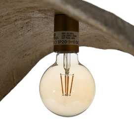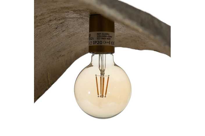 Material: papel maché, hierro. Voltios: 220-240V. Casquillo: E27. Bombilla: 1*40W máx. (no incluida). Longitud cable: 100cm.