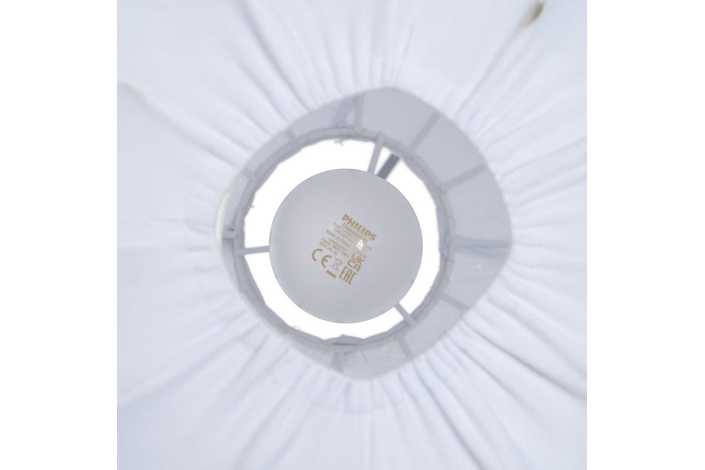 Material: tejido (100% poliéster), hierro. Voltios: 220-240V. Casquillo: E27. Bombilla: 1*40W máx (no incluida). Longitud cable: 65cm.