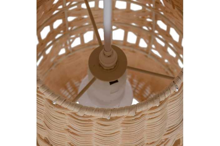 Material: Hierro/ratán/Bambú. Número de bombillas necesarias:1 Bombillas no incluidas. Voltaje:220-240V Bombilla: 1x40W máx. Casquillo: E27. Longitud del cable:1.20m.aprox. Altura tulipa:43,5cm Diámetro tulipa:20,5cm