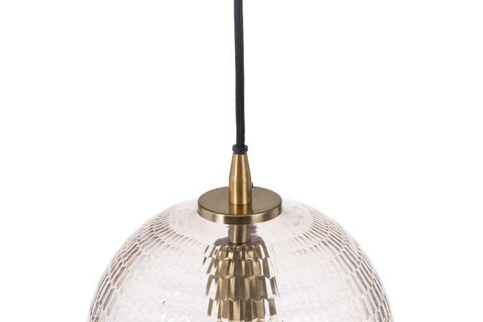 MATERIAL: CRISTAL, HIERRO, LATÓN. VOLTAJE: 220-240V CASQUILLO: E27 BOMBILLAS: 1 X 40W MÁX (NO INCLUIDAS). COLOR HIERRO: ORO VIEJO. COLOR CABLES: NEGRO. LARGO CABLE: 130 CM.