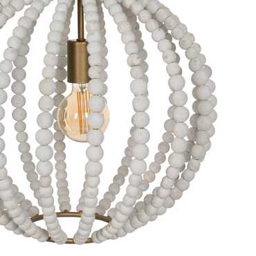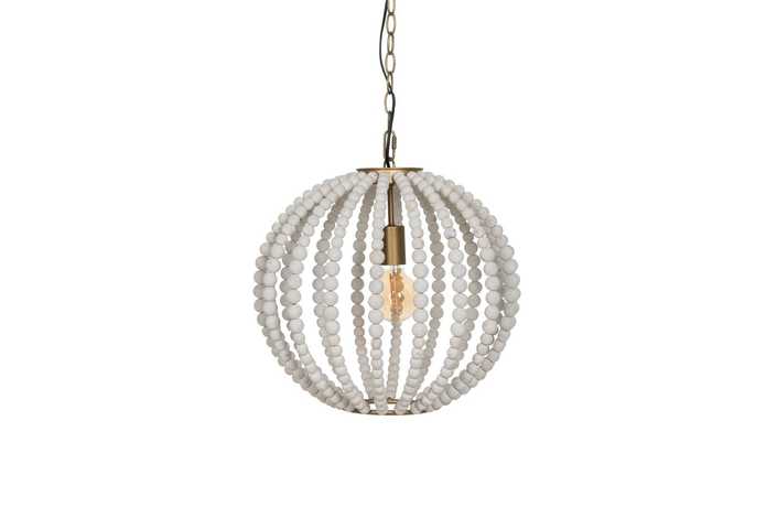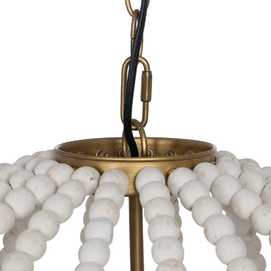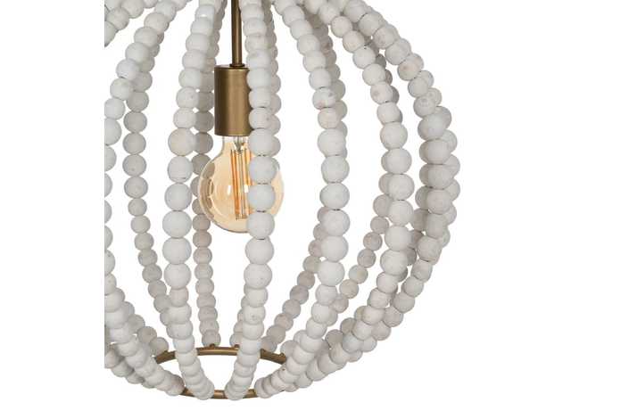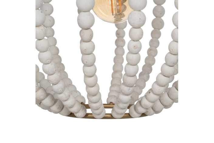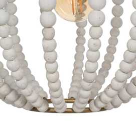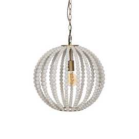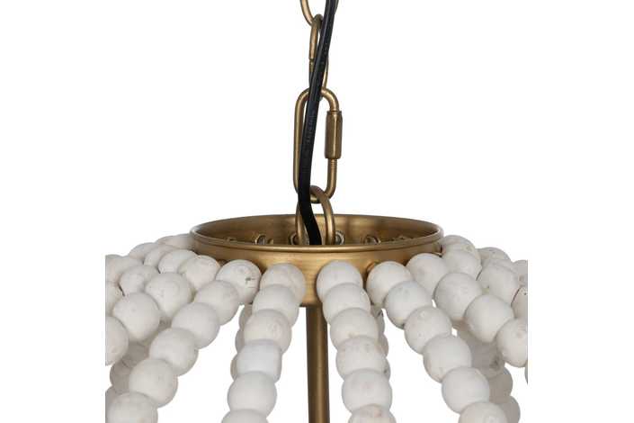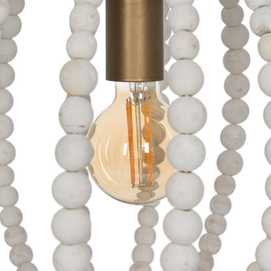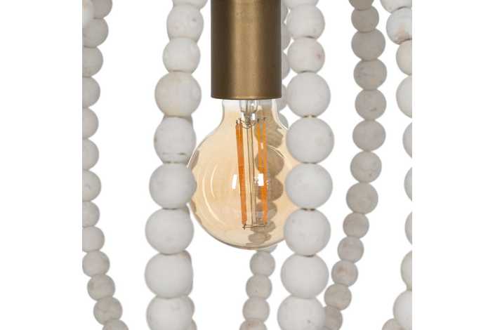 Material: Metal (estructura), madera Dm (cuentas). Voltaje: 220-240V. Casquillo: E27. Bombilla: 1x 40W (no incluída). Largo cadena: 65cm. Largo cable: 70cm.