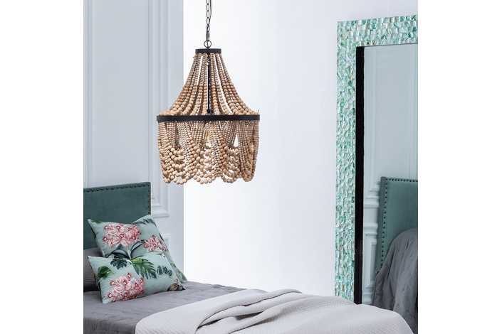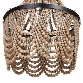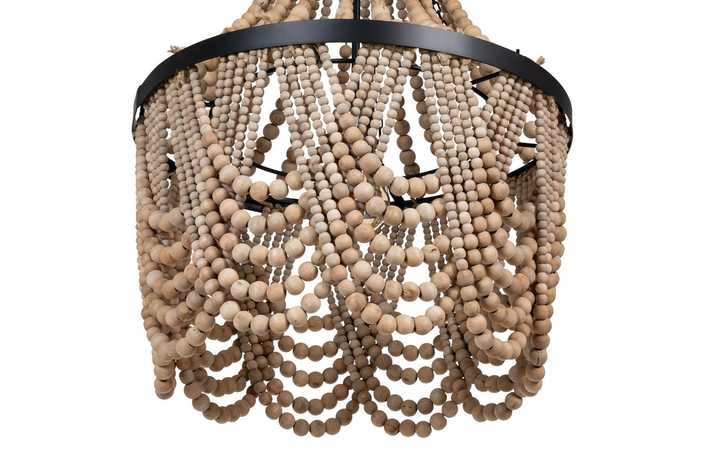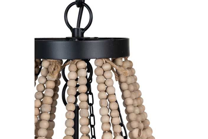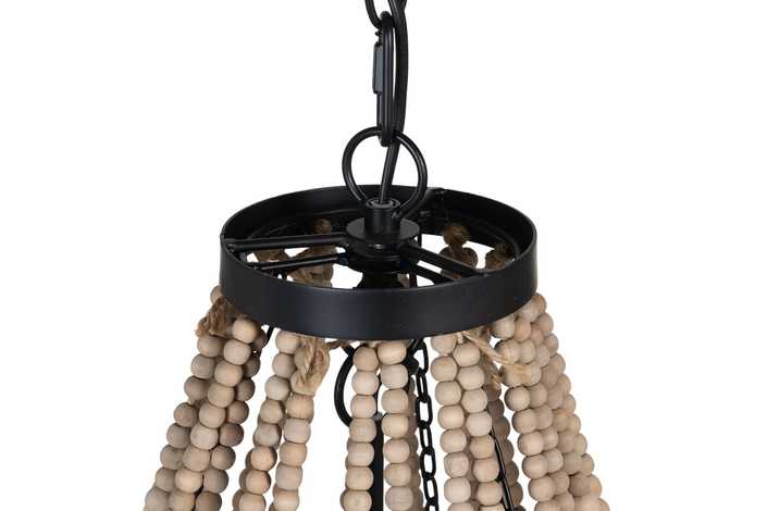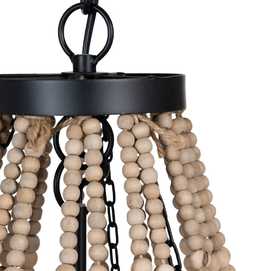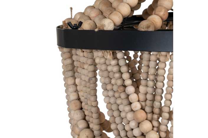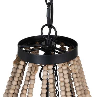 Material: Metal (estructura), madera Dm cuentas. Voltaje: 220-240V. Casquillo: E27. Bombilla: 1x40W (no incluídas). Largo cadena: 73cm. Largo cable: 88cm. Cable: negro.