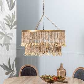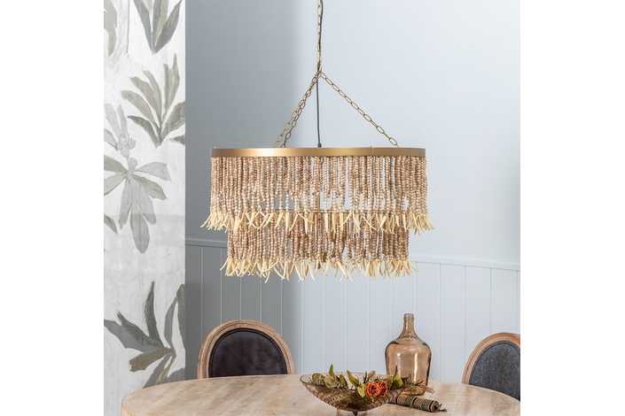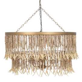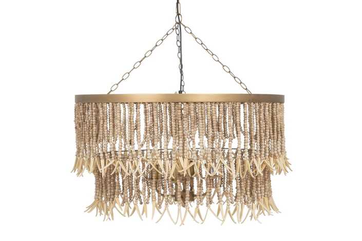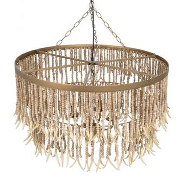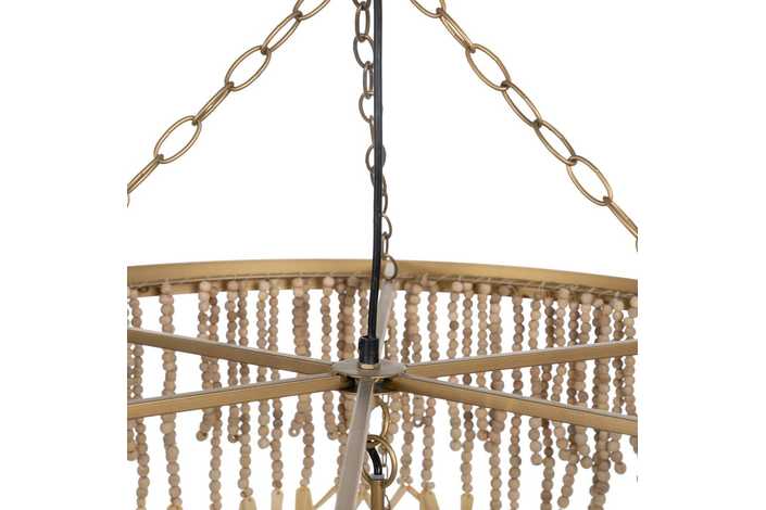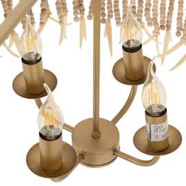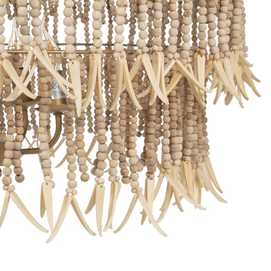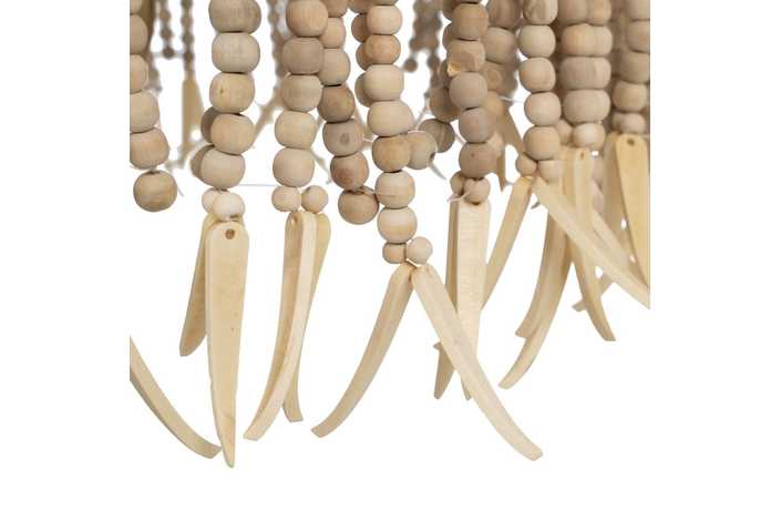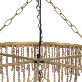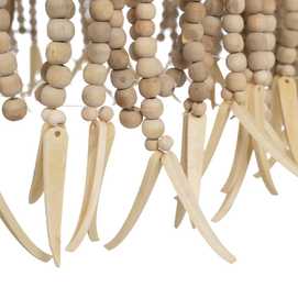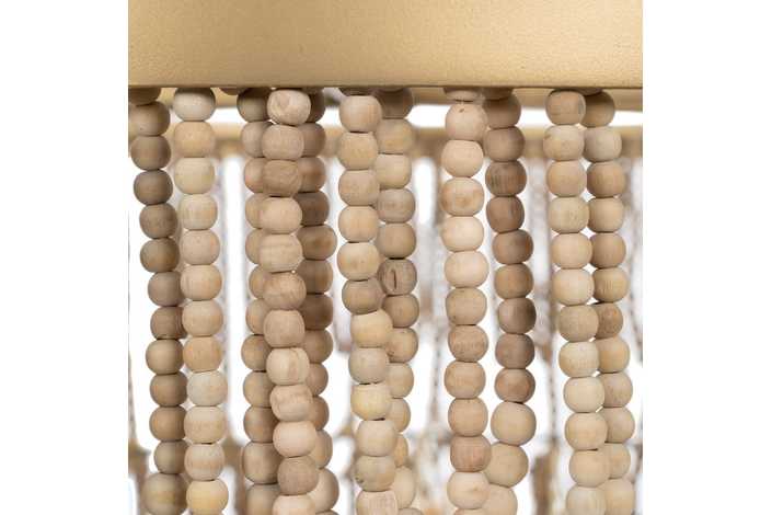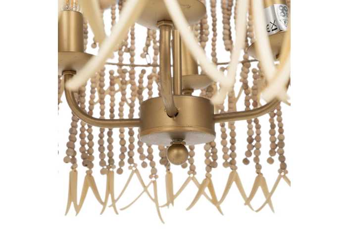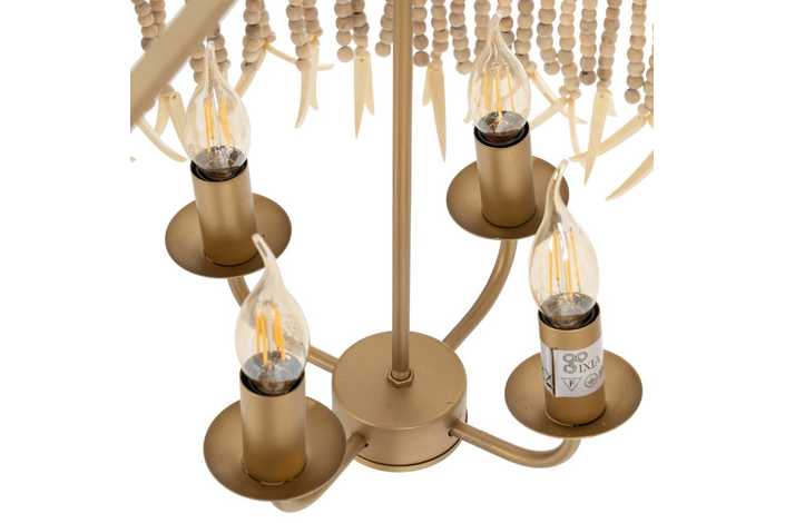 Material: Metal (estructura), madera Dm cuentas. Voltaje: 220-240V. Casquillo: E14. Bombilla: 4x40W (no incluídas). Largo cadena: 68cm. Largo cable: 90cm. Altura total lámpara con cadena: 110cm. Cable: negro.