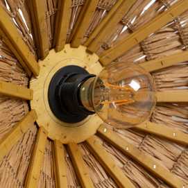 Material: fibra de papel. Voltios: 220-240V Casquillo: E27. Bombilla: 1*40W máx. (no incluida). Longitud cable: 85cm.
