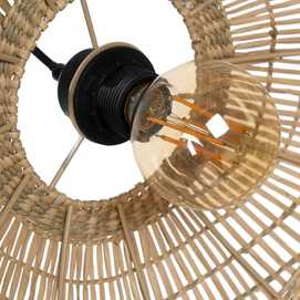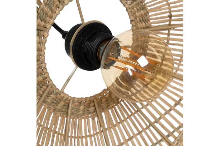 Material: fibra natural. Voltaje: 220V. Casquillo: E27. Bombillas: 1x40W máx (no incluida). Largo cable: máx 110cm.