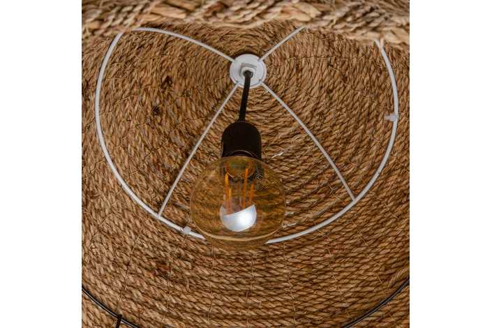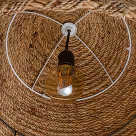 Material: Cuerda de cánamo. Número de bombillas necesarias:1 Bombillas no incluidas. Voltaje:220-240V Bombilla: 1x40W máx. Casquillo: E27. Longitud del cable:1.20m.aprox. Altura tulipa:52cm Diámetro tulipa:43cm