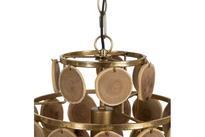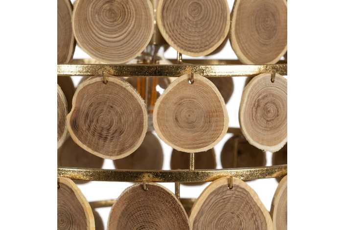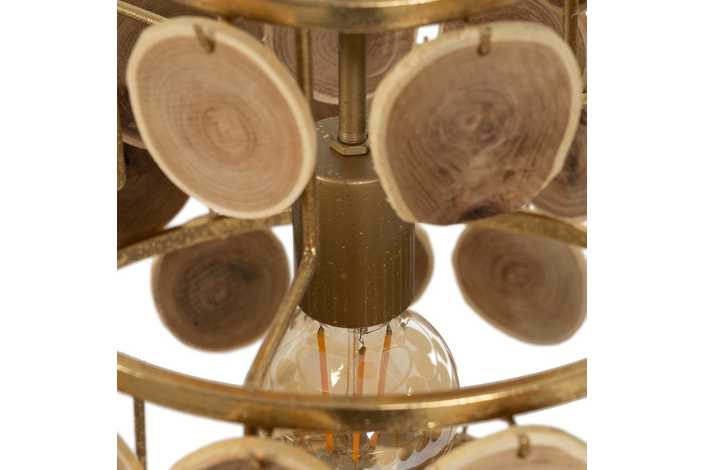 Material: Metal (estructura), madera Dm Voltaje: 220-240V. Casquillo: E27. Bombilla: 1x 40W(no incluída). Largo cadena: 65cm. Cable: negro. Medida largo cable: 80cm.