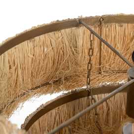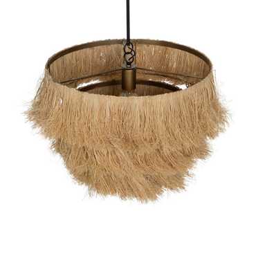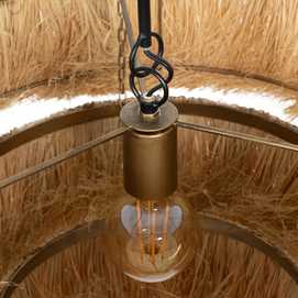 Material: Metal (estructura)- rafia. Voltaje: 220-240V. Casquillo: E27. Bombilla: 1x 40W (no incluída). Largo cadena: 85cm.