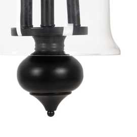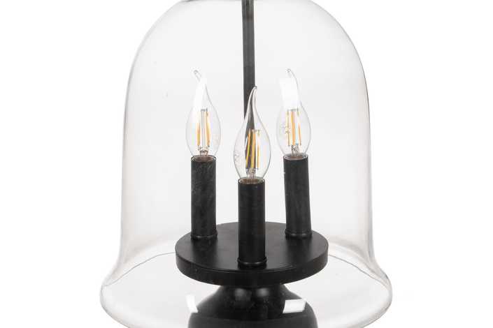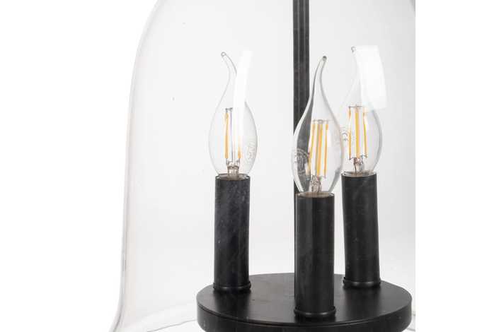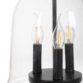 Material: hierro, cristal. Voltaje: 220-240V. Casquillo:3XE14 Bombilla: 3x 40W (no incluída). Largo cable: 150cm.